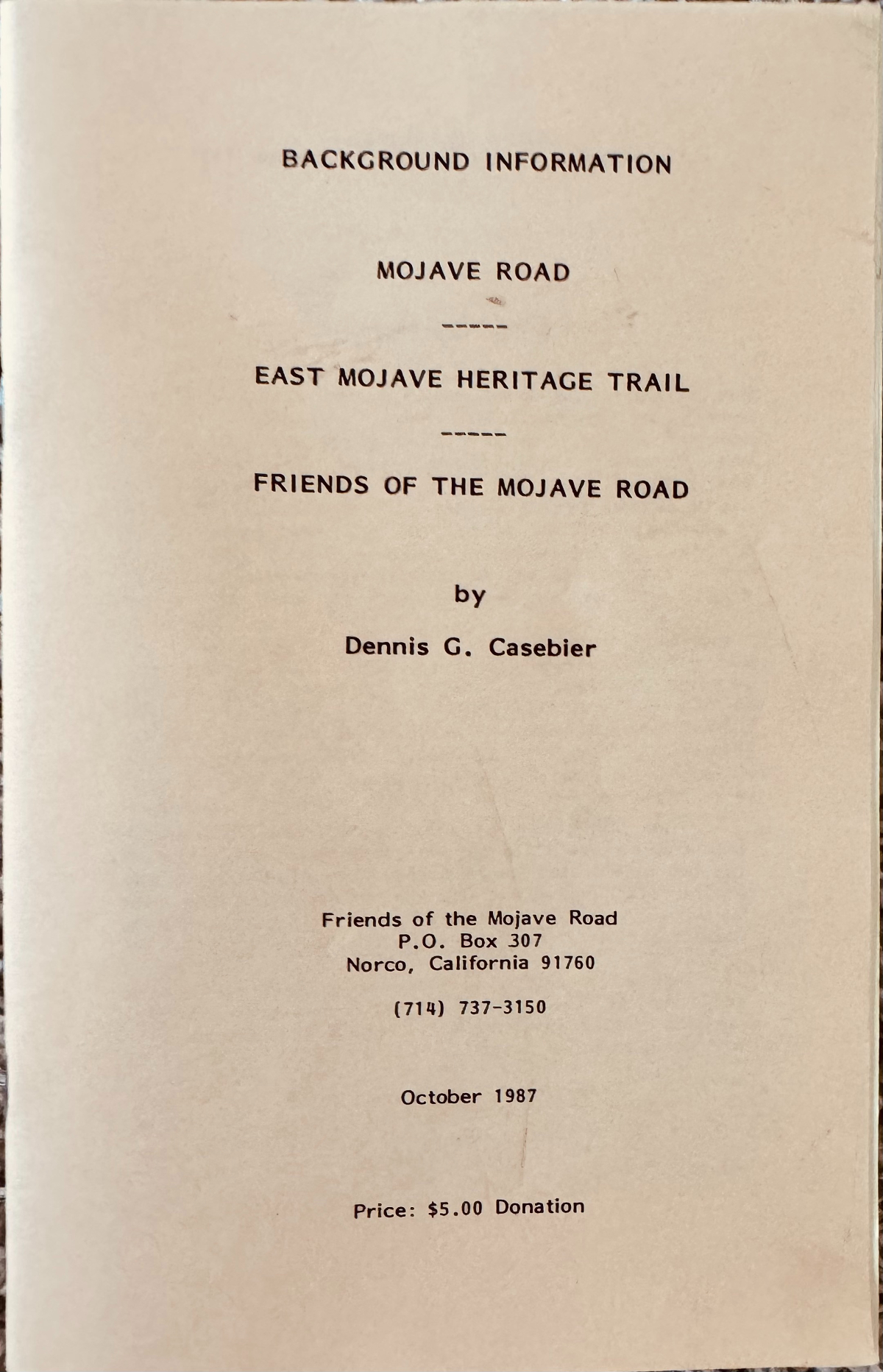 This bundle includes The Mojave Road Guide book as well as the classic Background Information booklet from 1987.