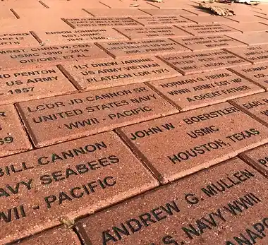 Each brick is laser engraved, with up to three lines on the 4 " x 8" brick and up to six lines on the 8' x 8' brick (all letters are capitalized for consistency).